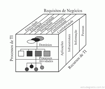 Considerando que a figura apresentada mostra a inter-relação dos componentes do COBIT, julgue os itens seguintes.