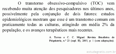Acerca do transtorno abordado o no texto acima, julgue os...