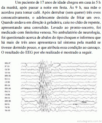 No caso clínico em tela, a queda do paciente deveu-se à crise convulsiva. Se o paciente caísse e só depois de alguns dias apresentasse a convulsão, deveria ser afastada a possibilidade de meningite por meio de tomografia computadorizada de crânio.