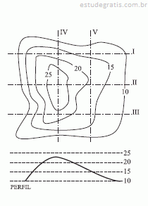 Analisando as curvas de nível de um levantamento planialtimétrico dadas pela figura, conclui-se que o perfil representado refere-se à linha de corte