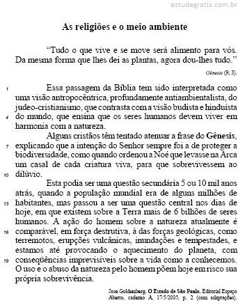 Respeita-se a argumentação textual, a correção gramatical, a clareza e a concisão de linguagem ao se transformar o período sintático "A ação do homem (...) sobre a vida como a conhecemos" (L.15-19) em dois períodos sintáticos: A força destrutiva da ação do homem sobre a natureza é hoje comparável à força geológica de terremotos, erupções vulcânicas, inundações e tempestades; que tem, como nós, conseqüências imprevisíveis sobre o aquecimento do planeta na vida que conhecemos.
