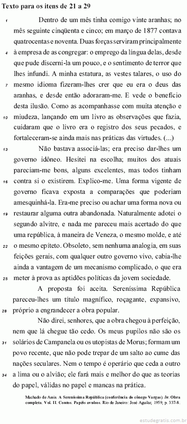 No que se refere aos sentidos, à organização das idéias do texto e à tipologia textual, julgue os itens de 21 a 26.