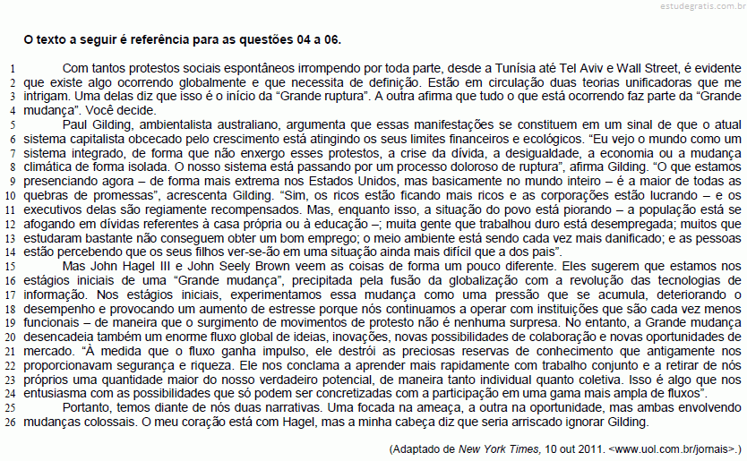 Para a teoria da Grande mudança, a crise atual é motivada: Comentários