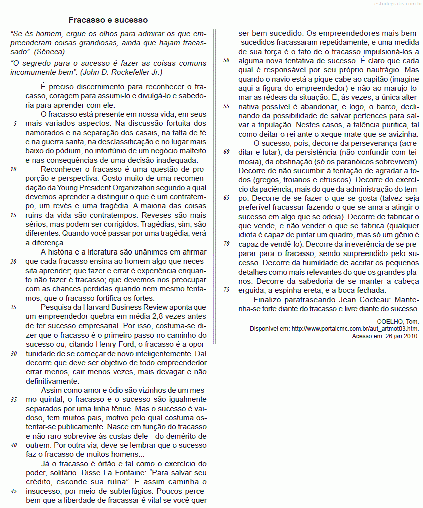 Segundo o texto, a justificativa para a afirmativa acima está no fato de ele (o sucesso)
