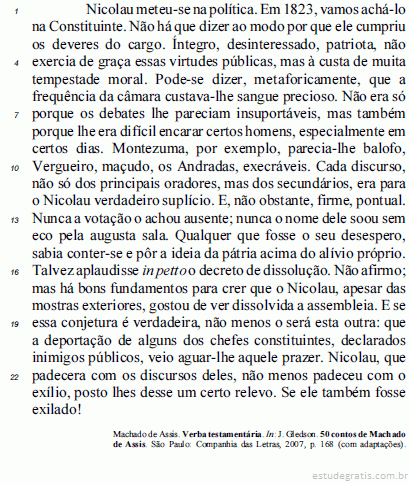 Depreende-se do texto que, para o narrador, Nicolau comportava-se de forma exemplar na câmara, embora não demonstrasse vocação política.
