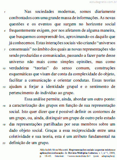 Pelo uso do pronome "esta" (l.21), indica-se na argumentação que o "atributo fundamental na definição de um grupo" (l.21- 22) é a teoria, não a reciprocidade ou a coletividade.