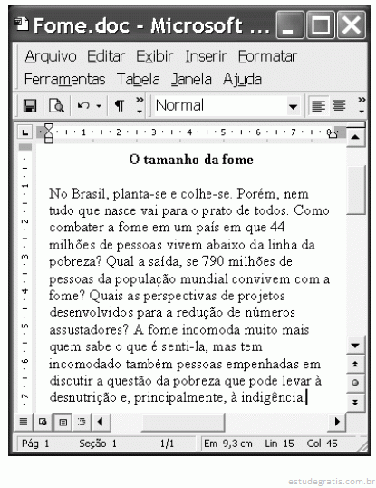 A figura acima mostra uma janela do aplicativo Word 2000 com parte de um texto de Maria Alice Cruz, extraído e adaptado do site www.unicamp.br. Com base na janela mostrada e considerando o texto nela contido, julgue os itens subseqüentes.