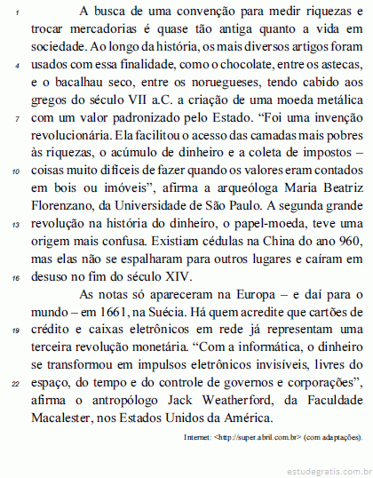 A forma verbal “Existiam” (l.14) poderia ser corretamente substituída por Haviam.Comentários