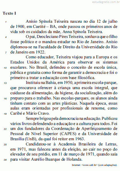 Com base nas ideias e estruturas linguísticas do texto I, julgue os itens subsecutivos.