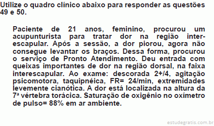 Assinale a alternativa correta para o teste diagnóstico do quadro. Comentários