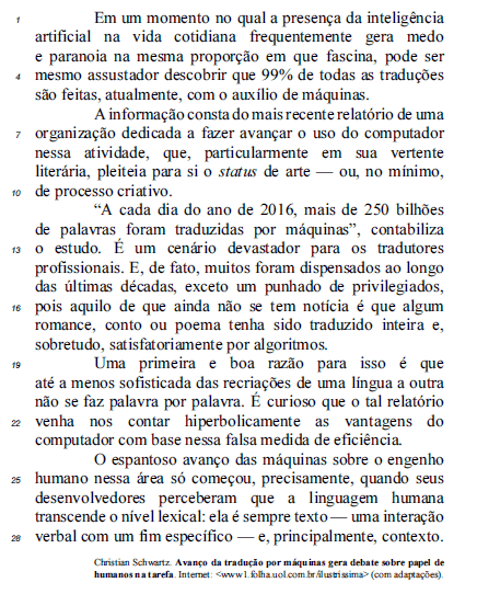 Com relação às ideias e aos aspectos linguísticos do texto antecedente, julgue os itens seguintes.