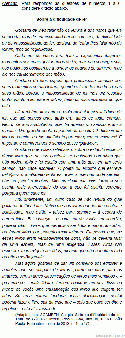 Julgue os itens que se seguem, considerando as ideias veiculadas no texto acima, a sua estrutura e seus aspectos gramaticais.