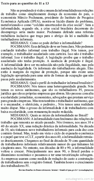 Atenção: As questões de números 9 a 15 referem-se ao texto que segue.