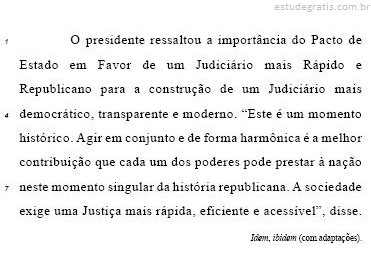 Pelos sentidos do texto, estaria correto no lugar de "disse" (L.8) qualquer uma das seguintes opções: disse ele, disse o presidente, foram as palavras do presidente, foi a declaração do presidente.