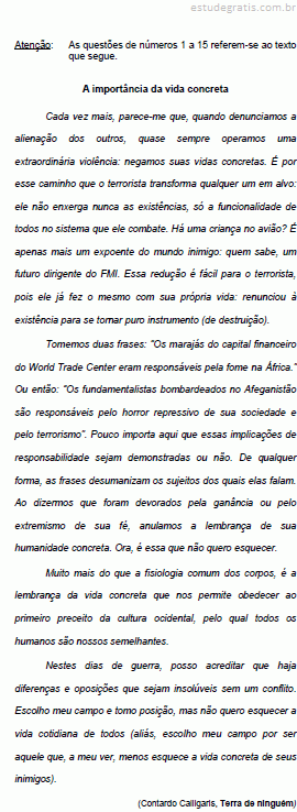 III. No último parágrafo, ao dizer escolho meu campo, e justificar essa escolha, o autor continua a dar extrema importância ao que chama de vida concreta.