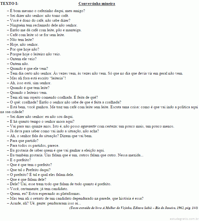 Pode-se afirmar que o dono da leiteria se encaixa perfeitamente na expressão “como bom mineiro que é...”, pois respondeu a quase todas as perguntas de modo