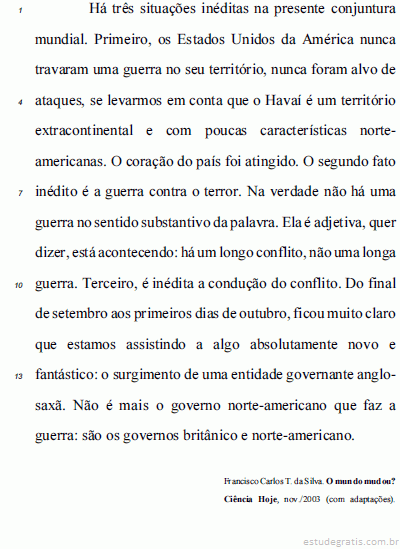 As questões de números 1 a 10 referem-se ao texto que segue.