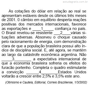 Assinale a opção que preenche as lacunas de forma coesa e coerente.