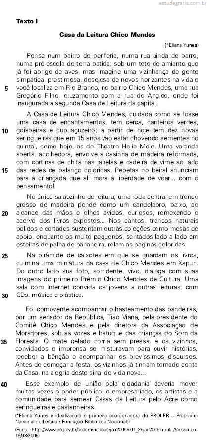 As questões de números 1 a 7 referem-se ao texto abaixo.